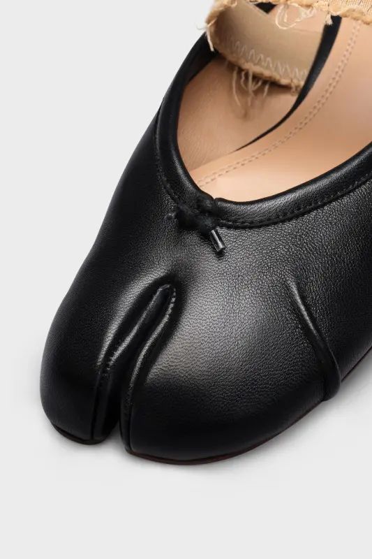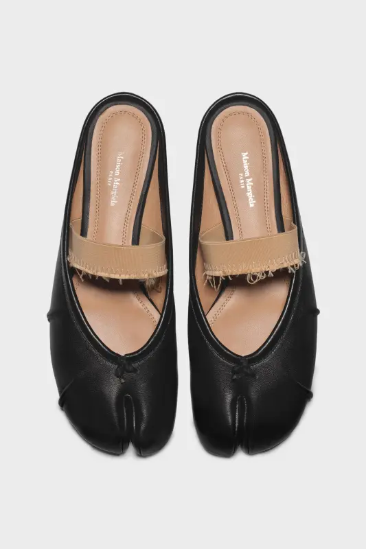 Maison Margiela Black Leather Tabi Ballerina Mule| Maison Margiela Black