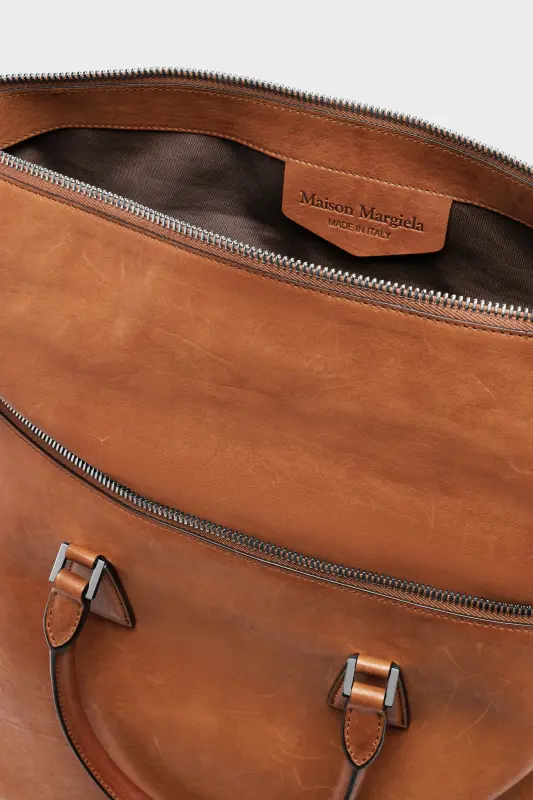 Part of the iconic 5AC line – named after the French word sac (bag) – the Loved to Death XL explores the Maison’s Anonymity of the lining concept. Washed, waxed, and finished by hand, its surface carries visible history – evoking the intimacy of timeworn leather. Sculptural lines, clean hardware, and the exposed top zip add definition. A structured top handle adds practicality, while the Maison's numeric artwork and four stitches reference its signature.