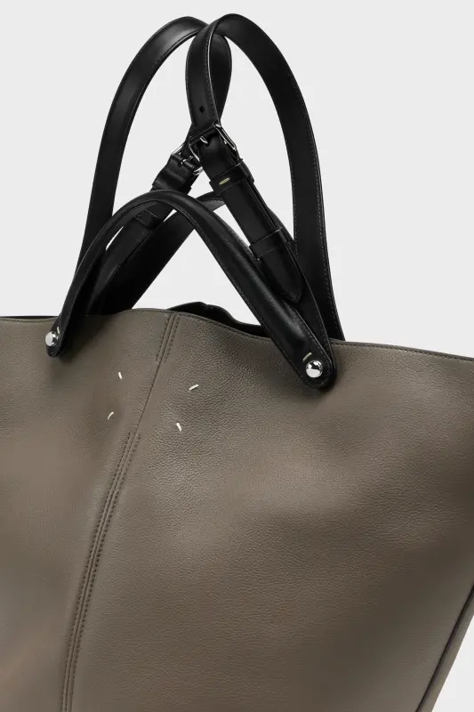 The Maison launches the Dress-age handbag for SS25, crafted from soft pebbled calfskin. With an equestrian spin, the large handbag features classic leatherwork and refined lines, combining unconscious glamour with gestural design. It follows a trapezoid shape with contrast dual-wear strap detail. The studded base allows the bag to stand, and the inner is adorned with the logo. Maison Margiela's signature, the four stitches, appear at the back; the opposite of a label.
