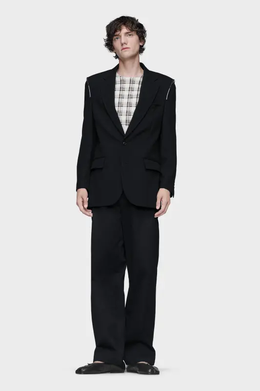 This cotton T-shirt reworks a wardrobe staple with a front panel in checked fabric. At the back, the Maison’s signature four stitches appear; the opposite of a label.