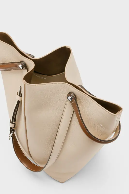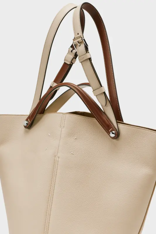 The Maison launches the Dress-age handbag for SS25, crafted from soft pebbled calfskin. With an equestrian spin, the medium handbag features classic leatherwork and refined lines, combining unconscious glamour with gestural design. It follows a trapezoid shape with contrast dual-wear strap detail. The studded base allows the bag to stand, and the inner is adorned with the logo. Maison Margiela's signature, the four stitches, appear at the back; the opposite of a label.