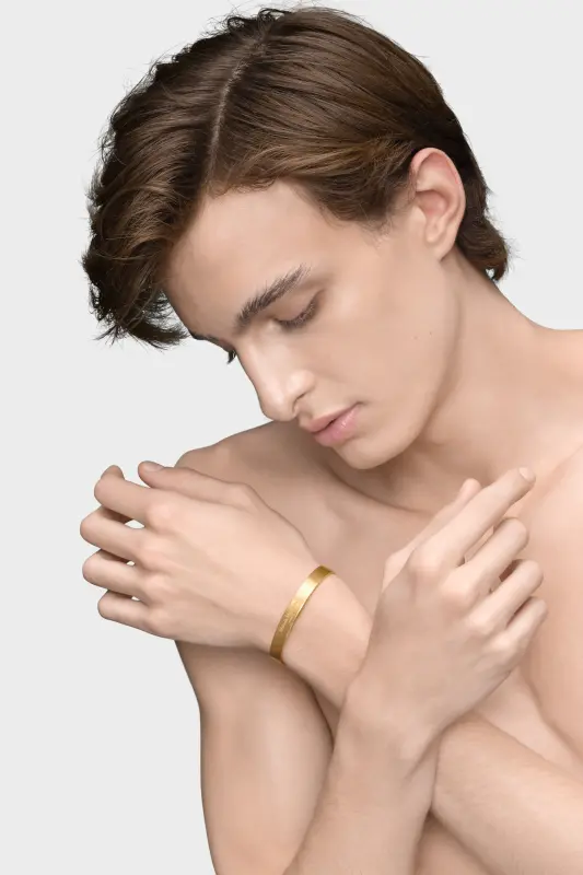 The 8mm cuff with yellow gold plating, with an engraved Maison Margiela logo.