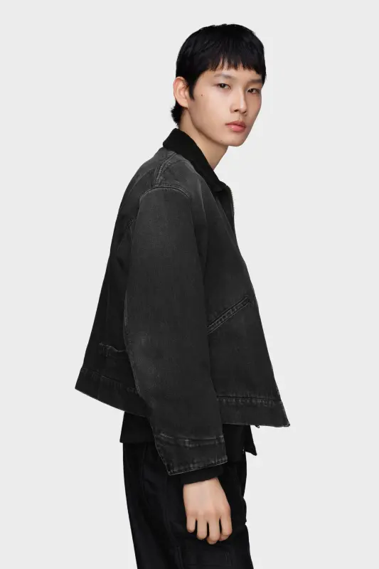 Crafted from original Japanese cotton denim and drawing from workwear silhouettes, this jacket is detailed with two welt pockets and a zipped chest pocket. A ribbed collar with a raw edge introduces unexpected contrast. Maison Margiela’s signature, the four stitches, appear at the back; the opposite of a label.
