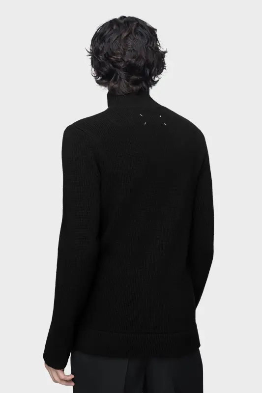 Maison Margiela Mens Black Cotton & Wool Knit Zip-Up Cardigan Black