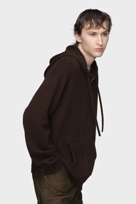 This soft, zip-up cashmere hooded sweater is shaped with relaxed fit. A ribbed hem and cuffs frame the silhouette, while patch pockets and a drawstring hood finish the design. Maison Margiela’s signature, the four stitches, appear at the back; the opposite of a label.