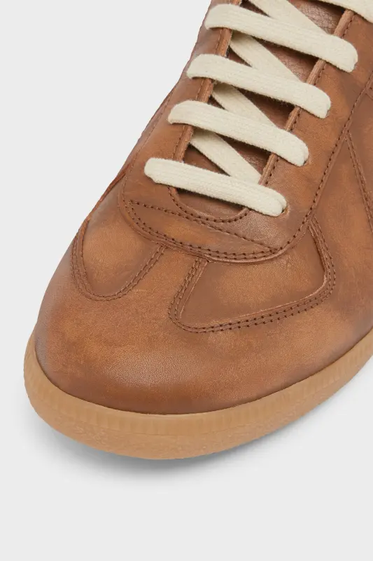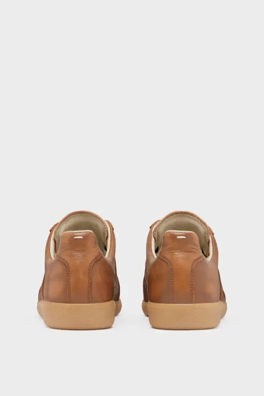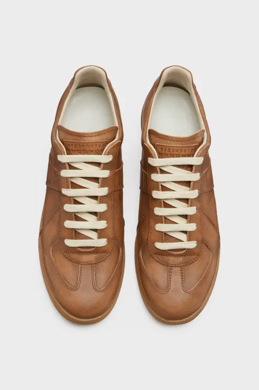 The Replica sneakers in vegetable tanned calf leather with sun fadded effect are finished on a classic rubber sole. The Maison's iconic Replica model is inspired by Austrian sports shoes from the seventies. Details on the Replica pairs are continually reworked in line with the season's inspirations.