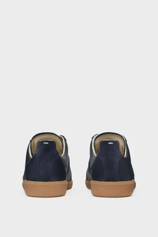 The Replica sneakers in nappa leather and suede with a honey sole. The Maison's iconic Replica sneakers are inspired by Austrian sports shoes from the seventies. Details on the Replica pairs are continually reworked in line with the season's inspirations.
