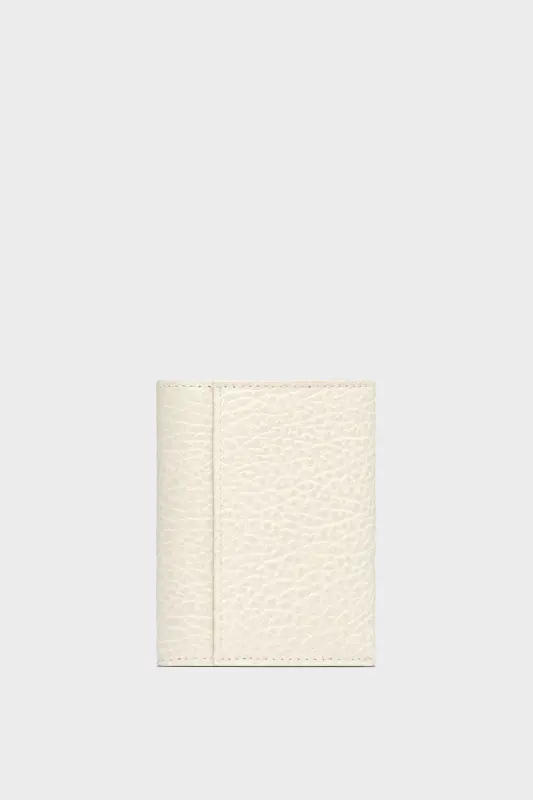 In embossed grainy leather, the wallet features the numeric logo inside with four card holders and a zipped section. Maison Margiela's signature, the four stitches, appear on the back; the opposite of a label.